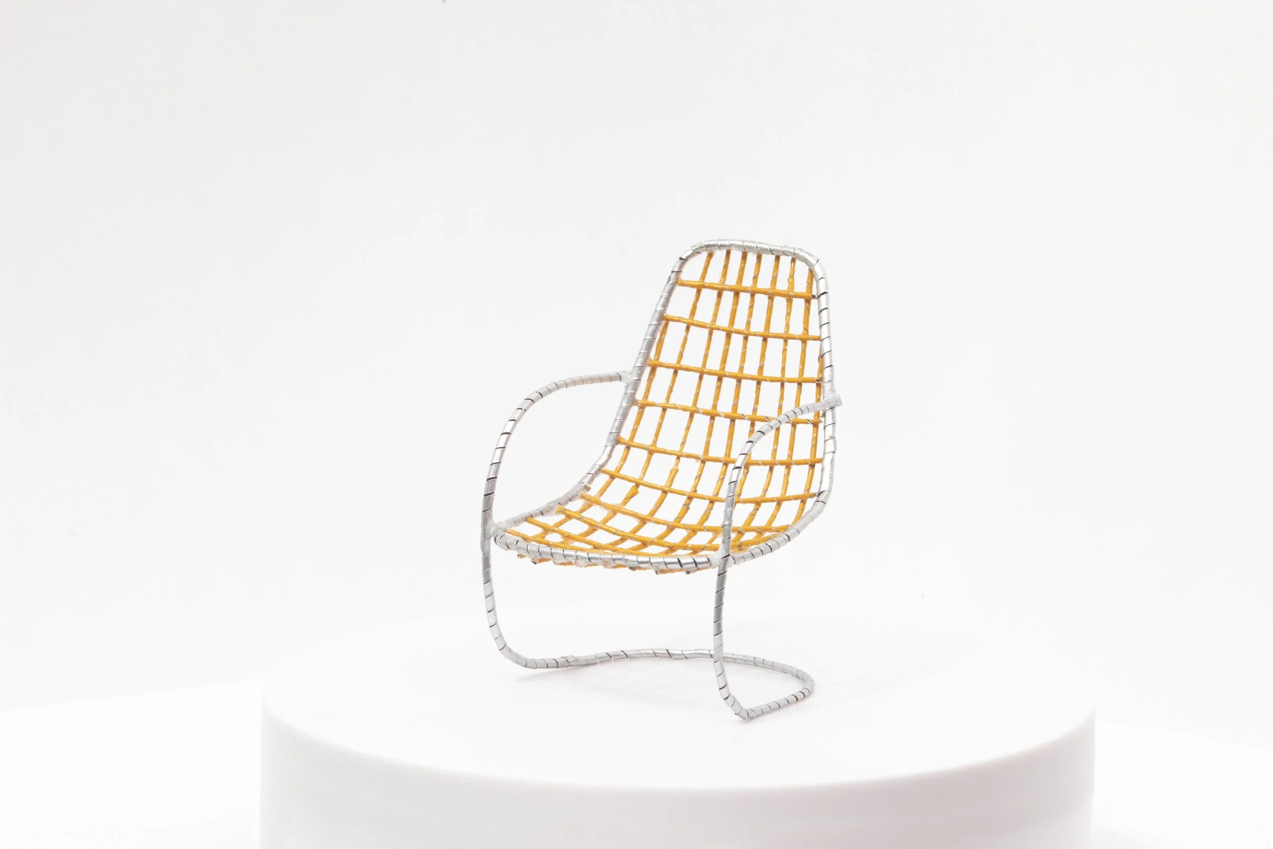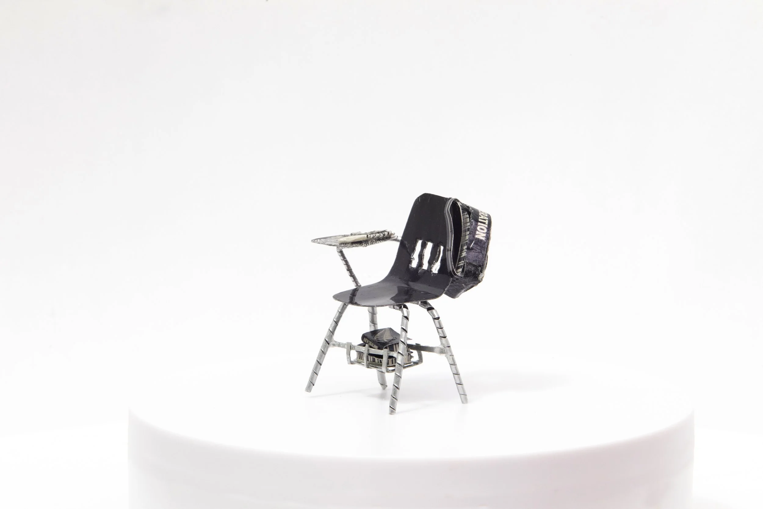 Deconstruct ONE aluminium beer can to make a miniature chair, which must fit within the can from which it was constructed. Only glue and solder may be used as fixing agents.